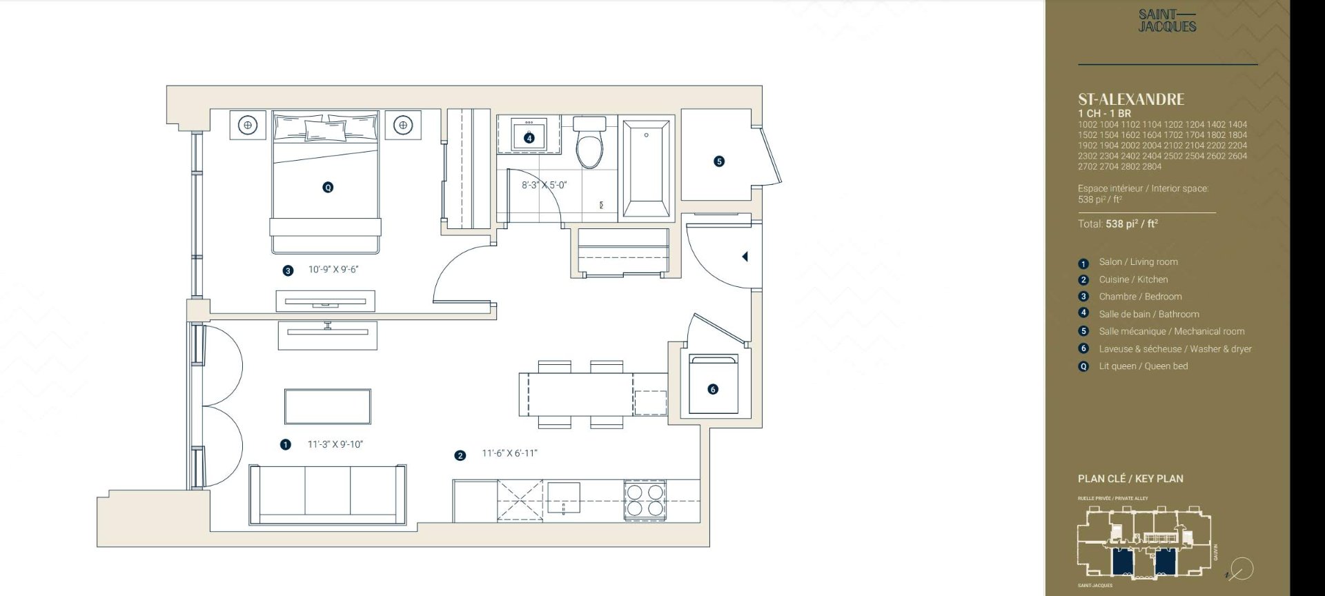 | Primary bedroom | 10.9 x 9.6 P | AU | Wood |