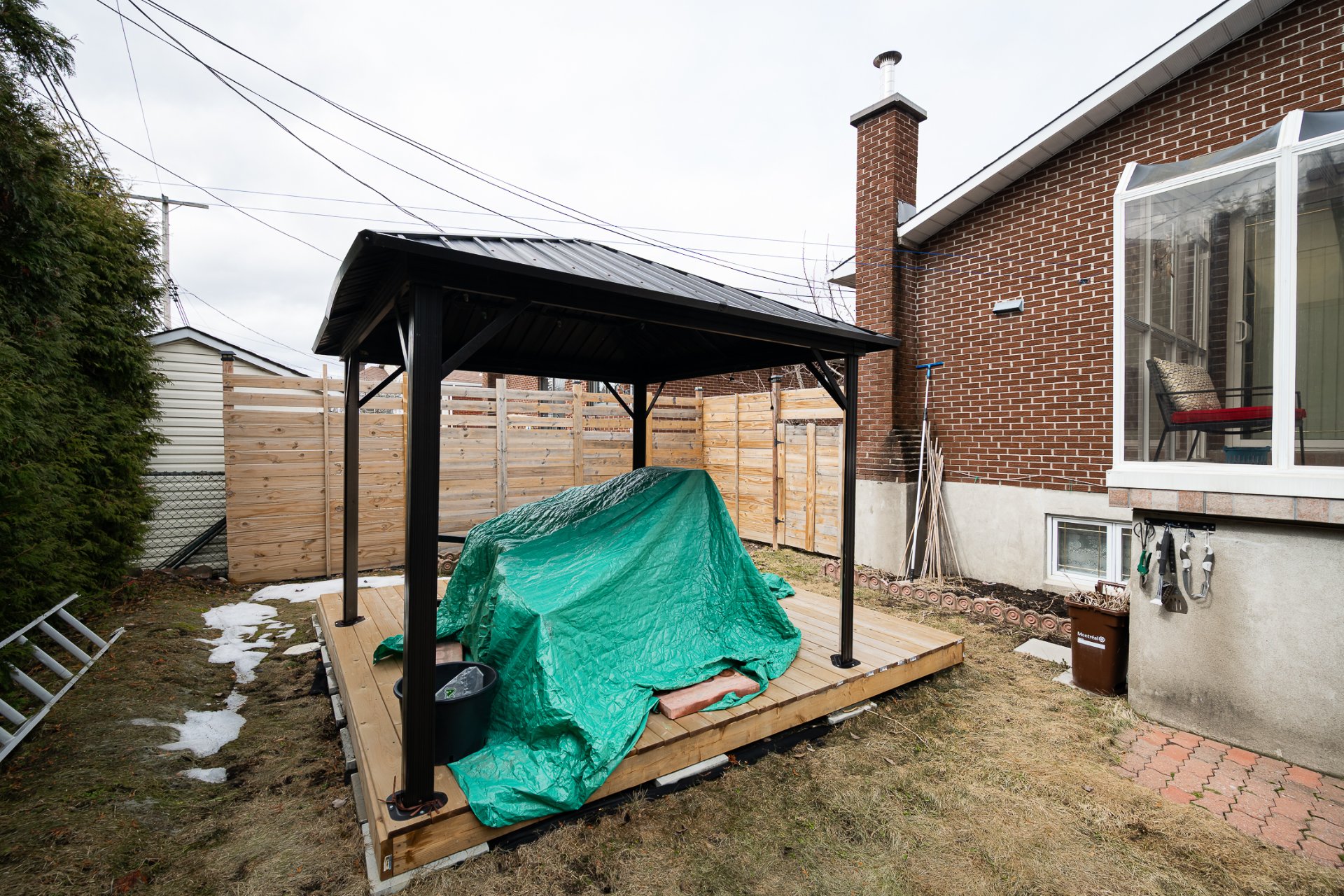 the previous owners. In the yard, a wooden fence was