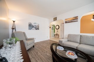 Detached, fully bricked bungalow, tastefully renovated and move-in ready. Offering 4 bedrooms with the possibility of a 5th, this home provides excellent flexibility for growing families or those needing a home office. The main floor bathroom was fully renovated in 2020, while the kitchen and flooring were redone in 2023. The basement bathroom was also updated in 2023, and the second kitchen was removed to create additional living space. Windows were replaced by previous owners. Featuring a fenced yard with a wooden platform added in 2024, this well-maintained property offers comfort, functionality, and long-term value.