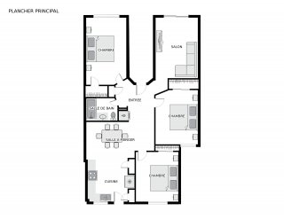 | Salon | 10.4 x 14.10 P | 2ième étage | |